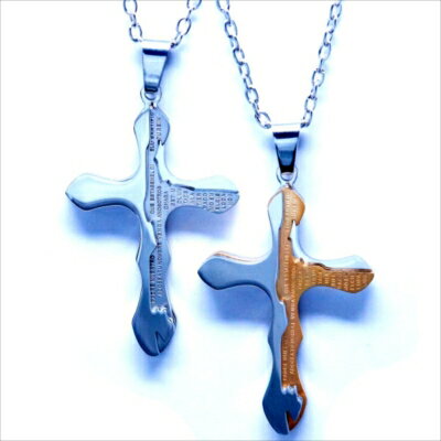 ステンレス ペンダント ネックレス メンズ クロス 十字架 聖書 バイブル ルード キリスト 【金or銀】